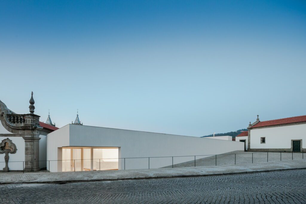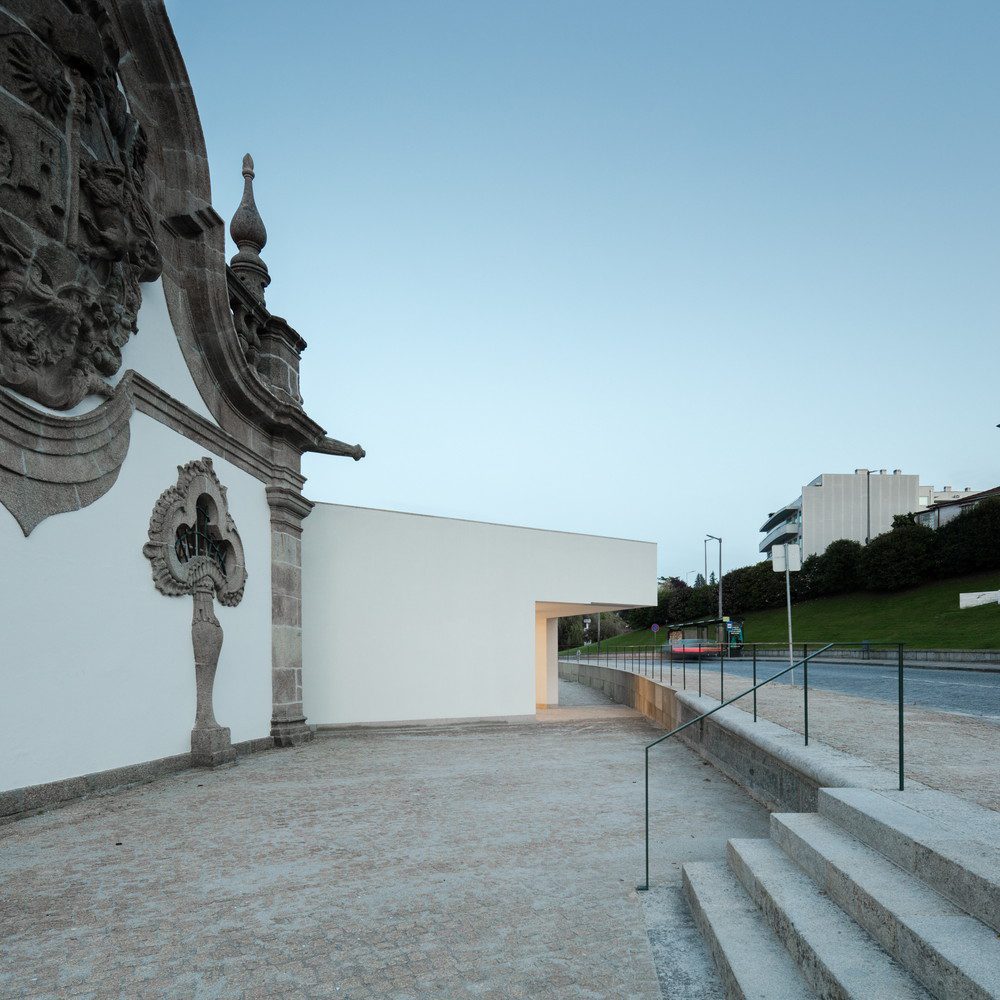 The selected scheme for the building implantation takes on particular meaning in the functional organization of the museum. From the main entrance, facing the old museum, we access to the lobby that connects with the Municipal Museum Abade Pedrosa, with the reception and the vertical accesses. The pavement heights have continuity with the Monastery of São Bento.